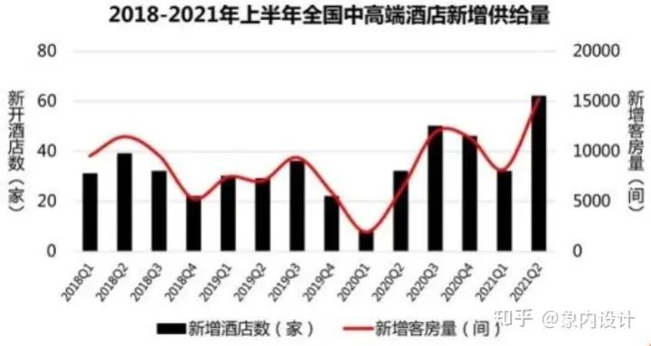 直到2018年,“國潮”席卷各行各業(yè),嗅覺敏銳的酒店界也逐漸開始行動(dòng)了。一批帶有強(qiáng)烈中國風(fēng)的國際品牌酒店逐步誕生。相關(guān)報(bào)告顯示,2021年上半年,全國新開業(yè)中高端酒店94家,同比增長135%;新增客房量為23453間,同比增長193.57%。